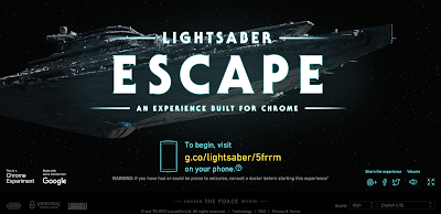 Ok so this is just pretty cool - turn your smartphone into a Star Wars Light Saber. You will need a computer with the Chrome web browser & your smart phone with the chrome web browser as well. Navigate on your computer to the link above or go to:lightsaber.withgoogle.com