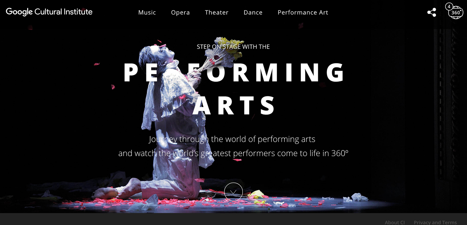 Do you love the Performing Arts? Here is your opportunity to experience them in a way never before possible. Strategically placed 360º cameras stationed on the stage capture the Performing Arts for your enjoyment.